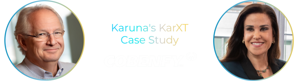 These challenges were later addressed by members of our team through the invention of KarXT (now called Cobenfy) at PureTech – which was led by Daphne Zohar. Karuna was co-founded by Ms. Zohar who brought in Dr. Paul as CEO.